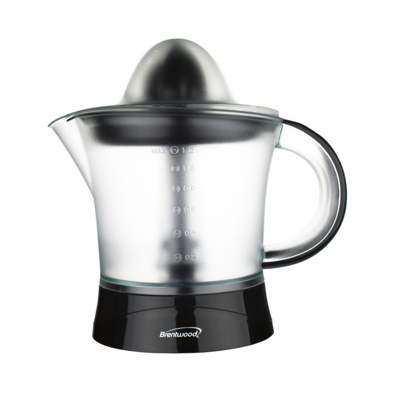 Exprimidor de cítricos eléctrico Brentwood de 40 oz. Jugo de naranjas, limones, limas y más. El cono de inversión automática extrae la máxima cantidad de jugo. La jarra de visión clara se levanta de la base para servir de inmediato. Las piezas extraíbles se pueden lavar en el lavavajillas.