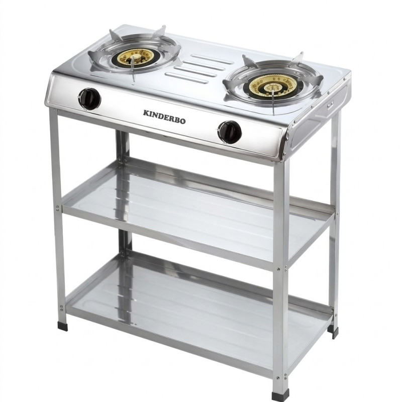 Estufa a gas de mesa con 2 entrepaño de 2 hornillas de acero inoxidable.