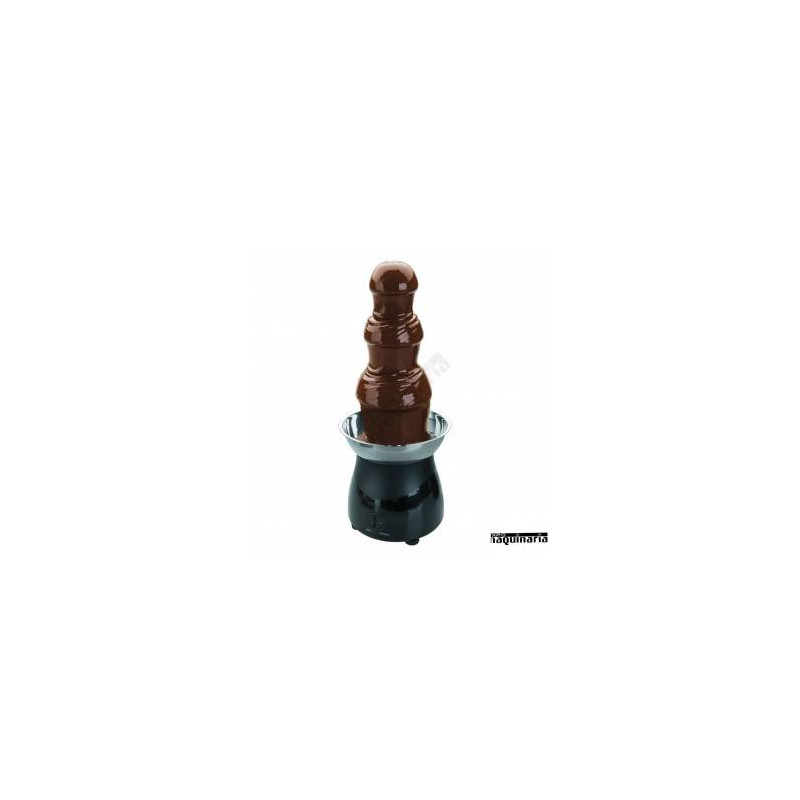 Perfecta fuente de chocolate para compartir exquisitos postres, en ella se pueden utilizar distintos chocolates; negro, blanco, con leche, e incluso se pueden añadir especias, Su base fabricada en ABS, contiene el motor, La bandeja de la parte superior es de acero inoxidable.