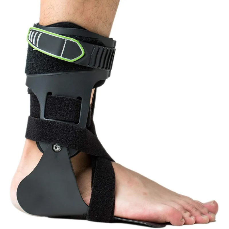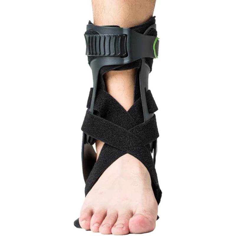 Tobillera de apoyo anatómicamente contorneada con articulación de bisagra, cierre de gancho y bucle ajustable que se ajusta a los cambios de hinchazón.